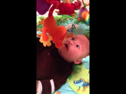 Hudson has really just started figuring out what to do with those things next to his thumb... Other than sucking on his digits, we have finally figured out that they can be used for stuff!